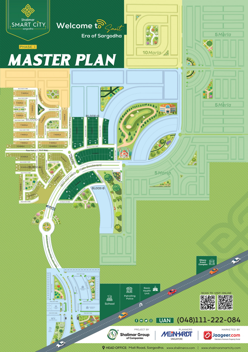 Shalimar Smart City a model of excellence from Shalimar Group of Companies is going to welcome the new era of Sargodha. This project is known for its significant work and town planning. It is going to happen for the first time in Sargodha that advanced technologies and smart tactics are being utilized to shape this mega project. World’s famous Urban- planners from Singapore representatives of Meinhardt are collaborating with Shalimar Group to develop sustainability into the future.